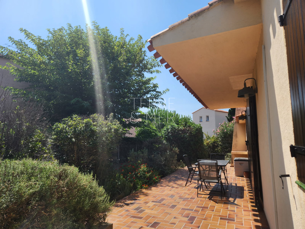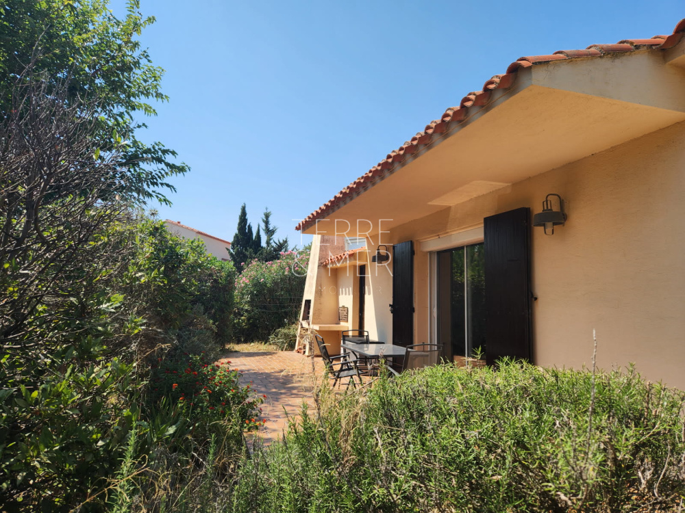 Emplacement exceptionnel pour cette villa en 4 faces située à seulement 100m de la plage. Édifiée sur un terrain de 441m2, cette villa de 85m2 de surface habitable comprend une entrée, une pièce de vie ouverte sur la terrasse et le jardin, une cuisine indépendante, deux chambres, une salle de bain et un wc indépendant. A l'étage, une spacieuse mezzanine aménagée en troisième chambre avec placard. Un garage complète le bien. Belles prestations : double vitrage, climatisation réversible, portail électrique, emplacement de stationnement, espace BBQ...Bon état général. RARE SUR LE SECTEUR Les informations sur les risques auxquels ce bien est exposé sont disponibles sur le site Géorisques