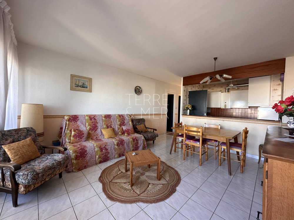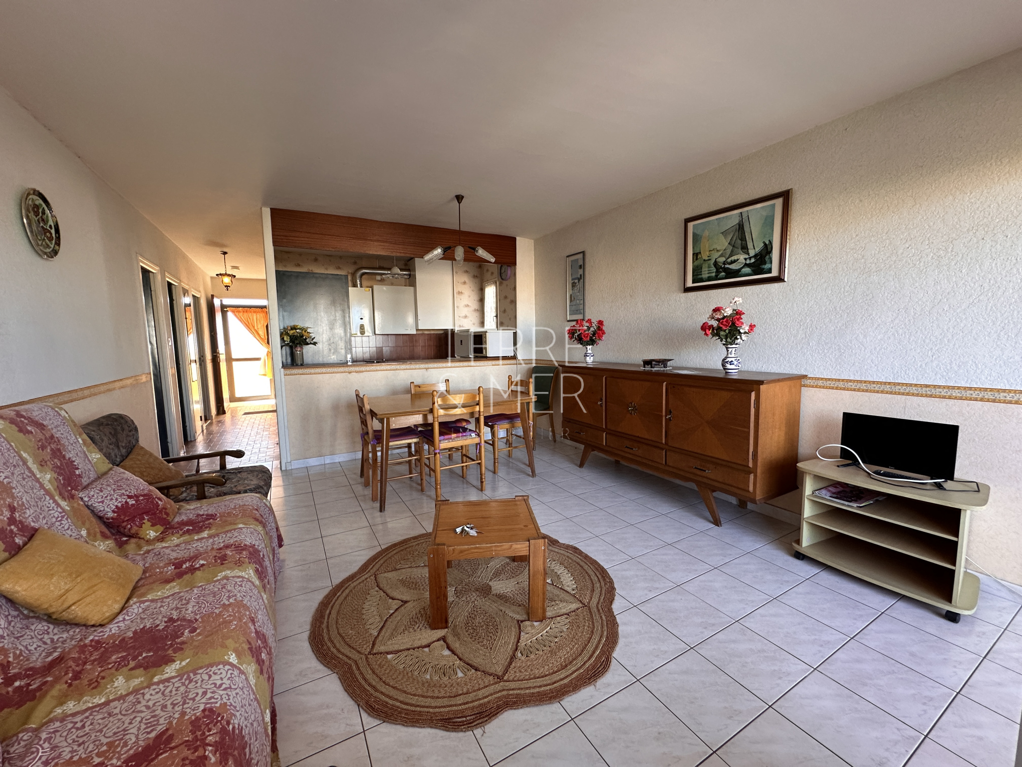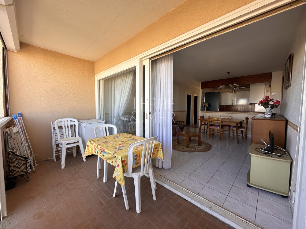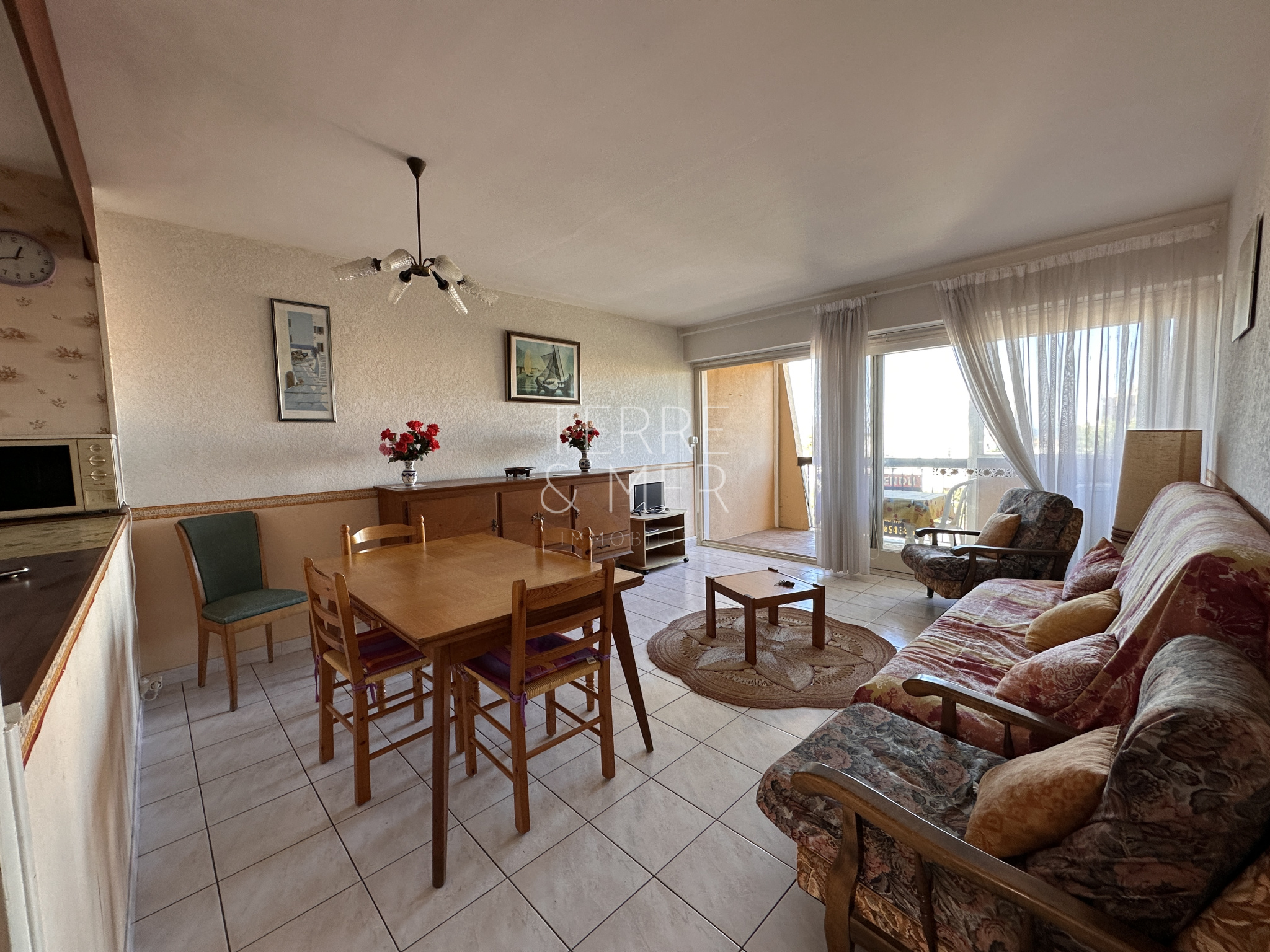 A proximité immédiate du Port et des plages. Au sein d'une résidence sécurisée avec ascenseur, appartement d'angle au 5ème et dernier étage avec une belle vue dégagée. Cet appartement, spacieux et lumineux, de type 3 d'une surface habitable d'environ 52 m2 avec terrasse est composé d'un sas d'entrée, deux belles chambres avec placard, une salle d'eau , un toilette séparé et une cuisine semie-ouverte sur le séjour donnant accès à la terrasse. L'appartement dispose d'une place de parking privée et d'une cave. Les informations sur les risques auxquels ce bien est exposé sont disponibles sur le site Géorisques