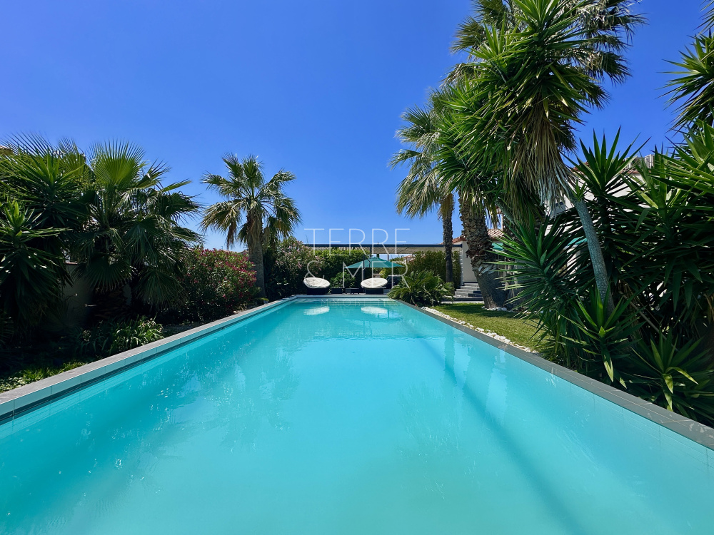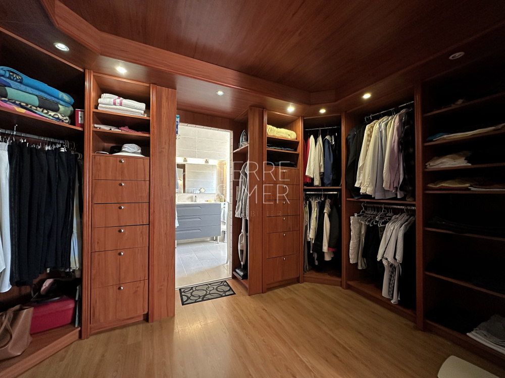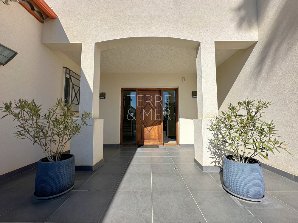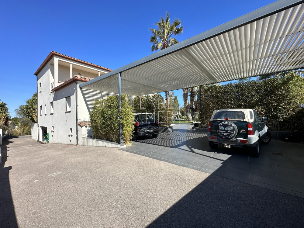 Perpignan Sud - Quartier résidentiel du Mas Vermeil - Villa en 4 faces de type 7 sur une parcelle arborée de 1500m2. Avec ses 240m2 de surface habitable, cette villa offre un espace de vie généreux et des prestations de qualité . Vous serez accueilli par un hall d'entrée, menant à une spacieuse salle à manger ouverte sur une cuisine entièrement équipée de 85m2, offrant un accès direct à la terrasse et la piscine à débordement. Le rez-de-chaussée offre également un salon lumineux ouvert sur l'extérieur, ainsi qu'une véritable suite parentale dotée d'un dressing et d'une salle d'eau équipée d'un hammam. À l'étage, un vaste palier de 30m2 vous mène à quatre chambres dont une disposant d'un accès au solarium, une salle d'eau et un toilette séparé. Afin de profiter pleinement de vos extérieurs , la villa dispose d'un pool house de 20m2, de belles terrasses protégées par des store-bannes électriques. La piscine chauffée (12,5 x 4,5) à débordement dispose de deux plages pour vos moments de détentes en famille ou entre amis. En bonus, la villa dispose d'un sous-sol de 140m2 avec porte sectionnelle motorisée, offrant un espace supplémentaire pour répondre à vos besoins. Côté extérieur la villa dispose dès son entrée d'un carport d'environ 50m2 ainsi qu'un parking à l'arrière de la villa. Les informations sur les risques auxquels ce bien est exposé sont disponibles sur le site Géorisques