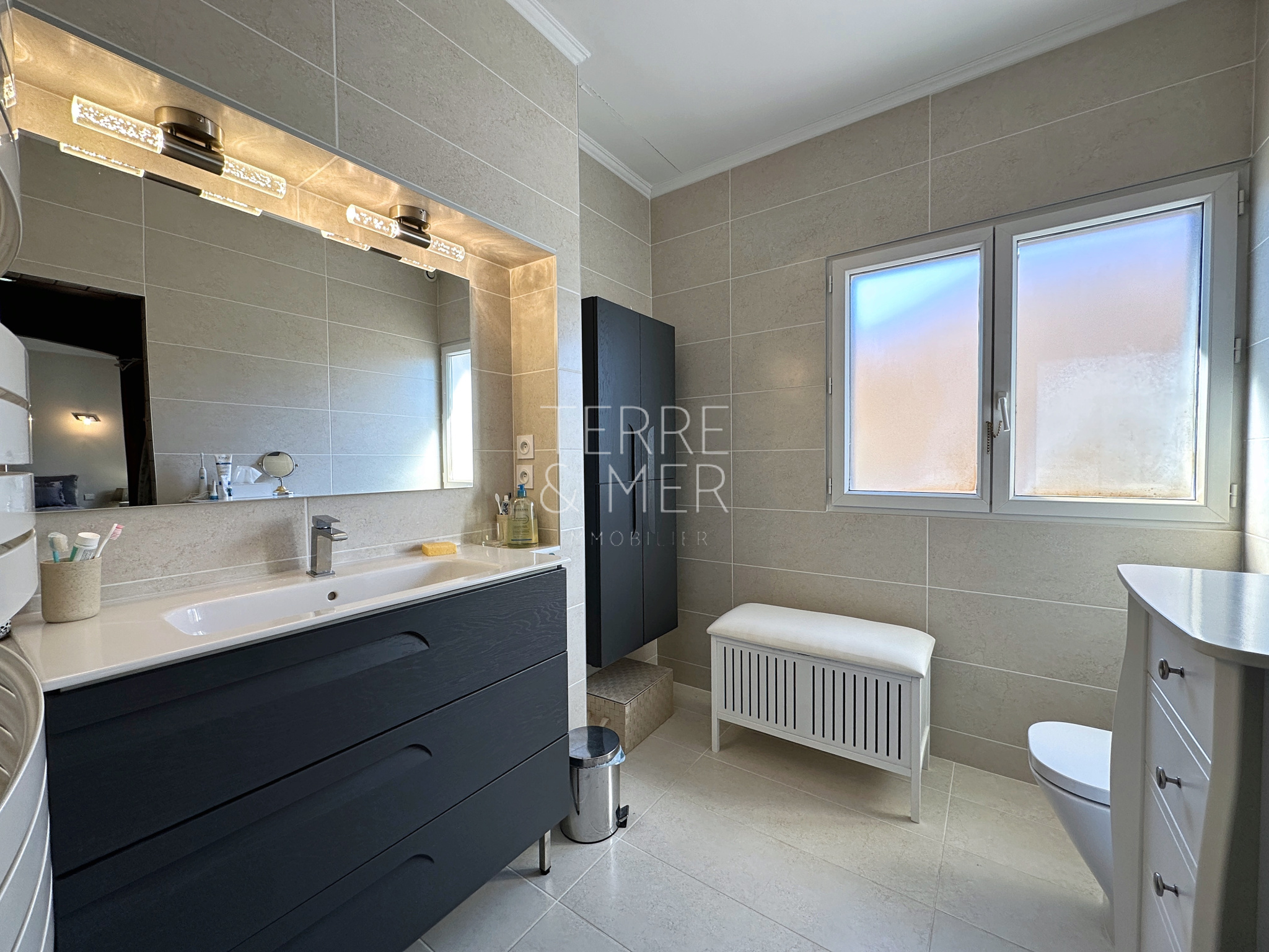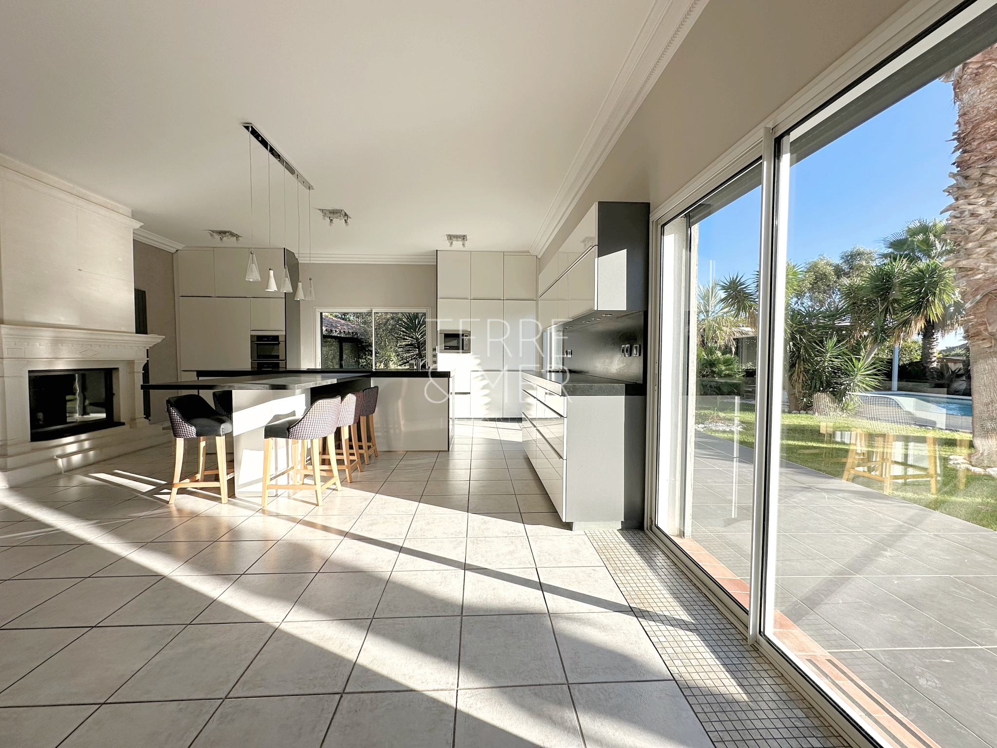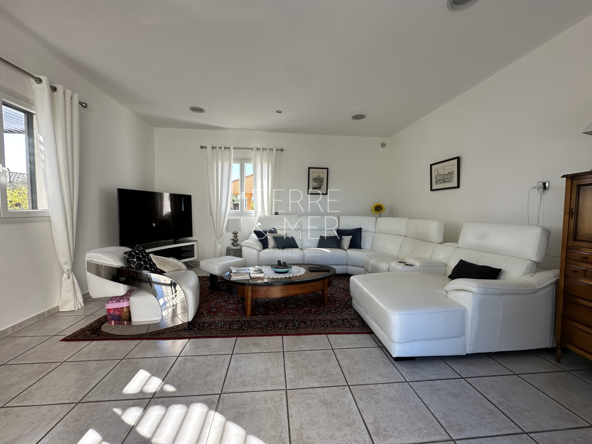 Perpignan Sud - Quartier résidentiel du Mas Vermeil - Villa en 4 faces de type 7 sur une parcelle arborée de 1500m2. Avec ses 240m2 de surface habitable, cette villa offre un espace de vie généreux et des prestations de qualité . Vous serez accueilli par un hall d'entrée, menant à une spacieuse salle à manger ouverte sur une cuisine entièrement équipée de 85m2, offrant un accès direct à la terrasse et la piscine à débordement. Le rez-de-chaussée offre également un salon lumineux ouvert sur l'extérieur, ainsi qu'une véritable suite parentale dotée d'un dressing et d'une salle d'eau équipée d'un hammam. À l'étage, un vaste palier de 30m2 vous mène à quatre chambres dont une disposant d'un accès au solarium, une salle d'eau et un toilette séparé. Afin de profiter pleinement de vos extérieurs , la villa dispose d'un pool house de 20m2, de belles terrasses protégées par des store-bannes électriques. La piscine chauffée (12,5 x 4,5) à débordement dispose de deux plages pour vos moments de détentes en famille ou entre amis. En bonus, la villa dispose d'un sous-sol de 140m2 avec porte sectionnelle motorisée, offrant un espace supplémentaire pour répondre à vos besoins. Côté extérieur la villa dispose dès son entrée d'un carport d'environ 50m2 ainsi qu'un parking à l'arrière de la villa. Les informations sur les risques auxquels ce bien est exposé sont disponibles sur le site Géorisques