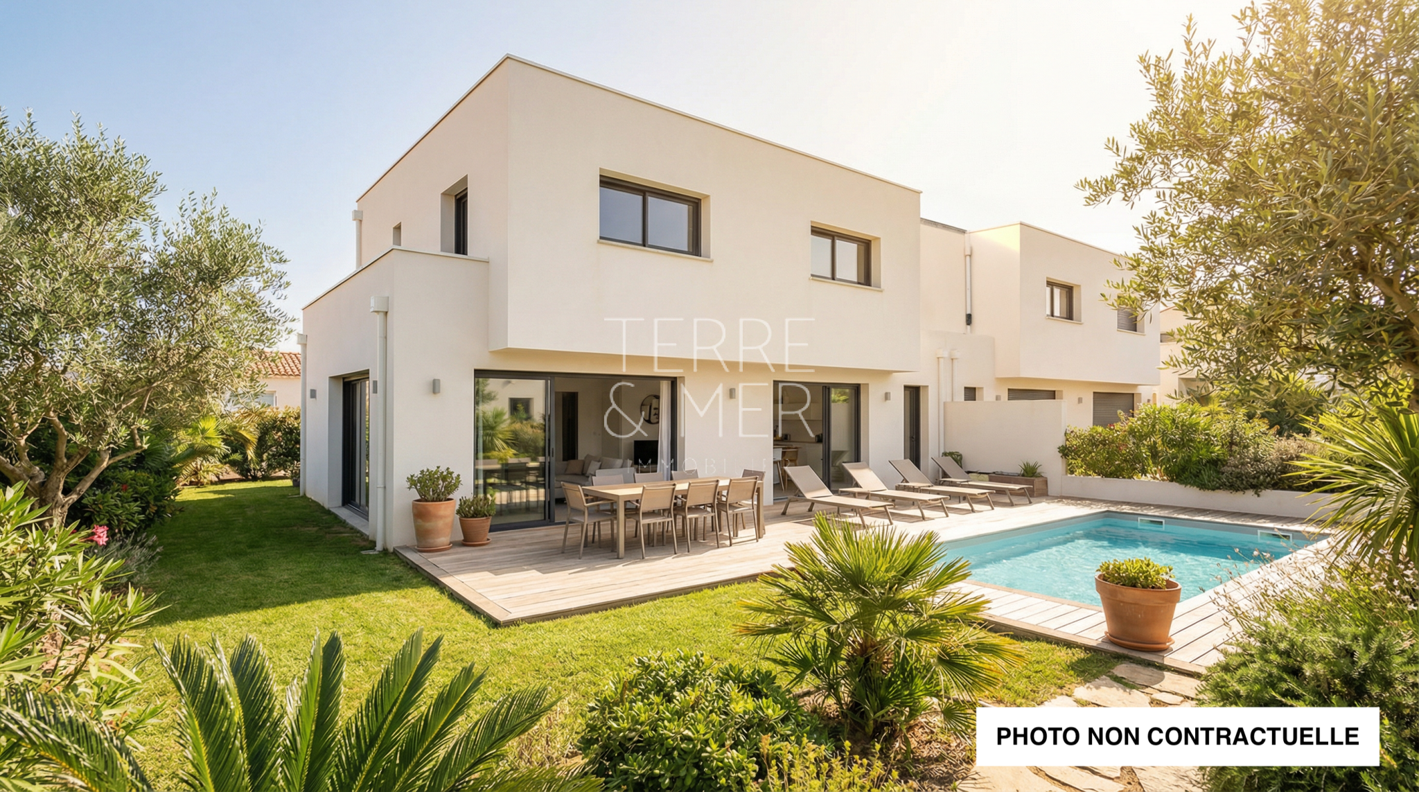 À St Cyprien Plage, à seulement 500 mètres de la mer et à proximité immédiate des commerces, découvrez cette maison neuve de 94 m² habitables dont la livraison est prévue en 2027. Le rez-de-chaussée propose un séjour avec cuisine ouverte donnant sur les extérieurs, une suite parentale avec salle d’eau, un WC indépendant ainsi qu’un cellier. À l’étage, deux chambres avec dressing, une seconde salle d’eau et un wc séparé complètent l’espace nuit. La maison bénéficie d’un jardin privatif exposé Sud-Est, avec possibilité de réaliser une piscine sur le terrain, ainsi que deux places de stationnement extérieures. Son emplacement privilégié permet de profiter pleinement d’un cadre de vie recherché, avec la plage et les commodités accessibles à pied. Idéale pour une résidence principale, secondaire ou un investissement. Les informations sur les risques auxquels ce bien est exposé sont disponibles sur le site Géorisques