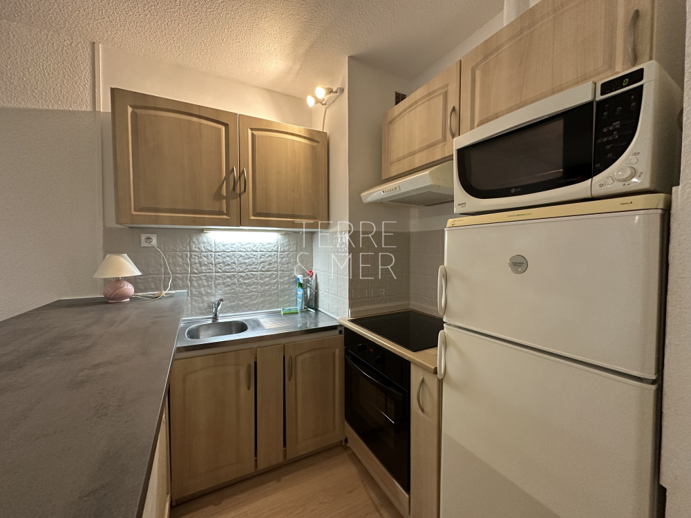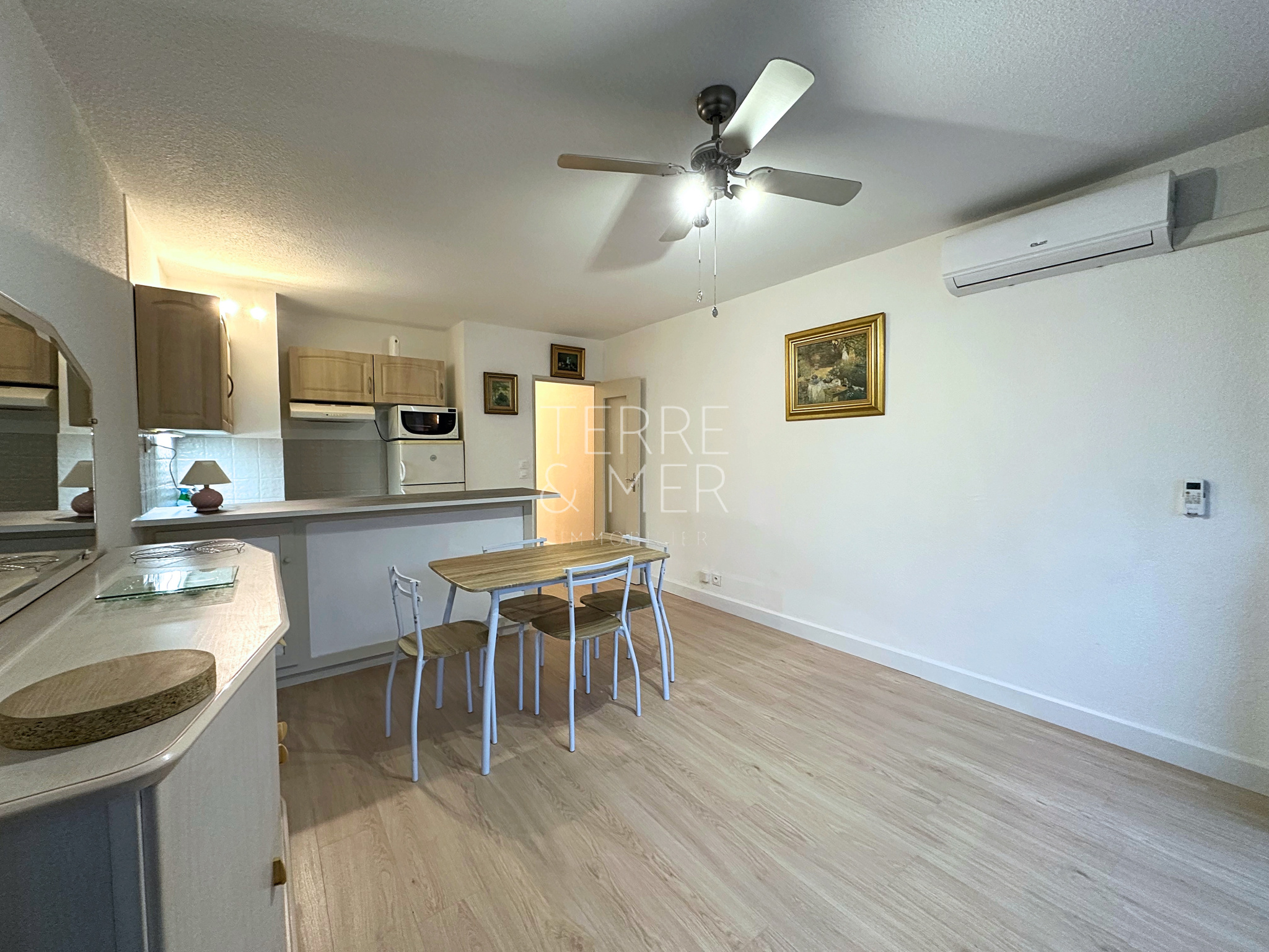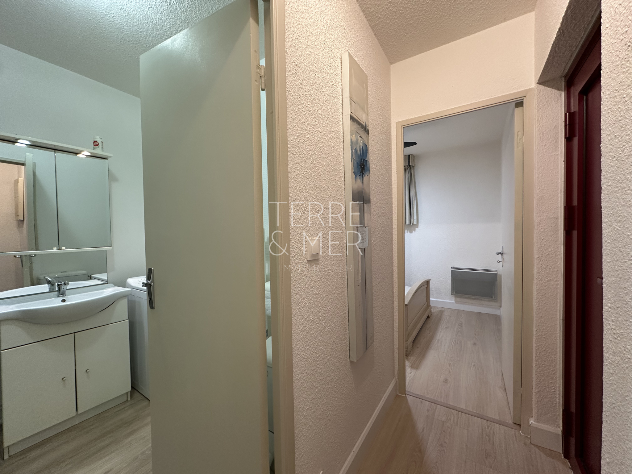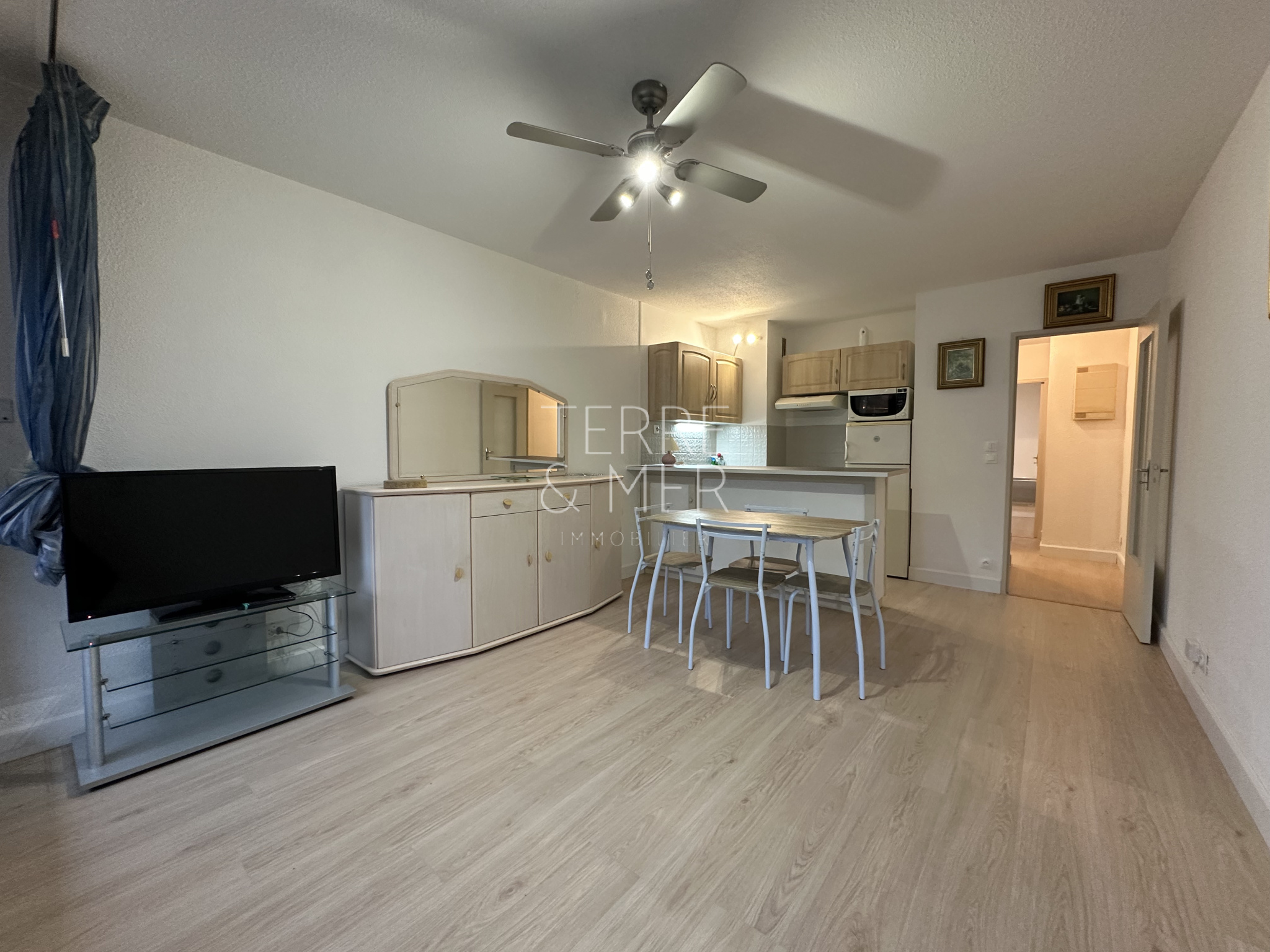 En exclusivité. A 100m de la plage. Dans une résidence sécurisée avec ascenseur à deux pas du port et de la plage, bel appartement 2pièces 35m2 rénové, comprenant une entrée avec placard, une pièce de vie avec cuisine équipée donnant sur une terrasse, une salle d'eau avec wc, une chambre avec placard. L'appartement est en très bon état, proche des commerces de la plage et du port. Volets roulants électriques, climatisation réversible, parquet au sol, menuiseries double vitrage. Le plus, une place de parking et une cave privative. À vivre à l'année ou en saison. Les informations sur les risques auxquels ce bien est exposé sont disponibles sur le site Géorisques