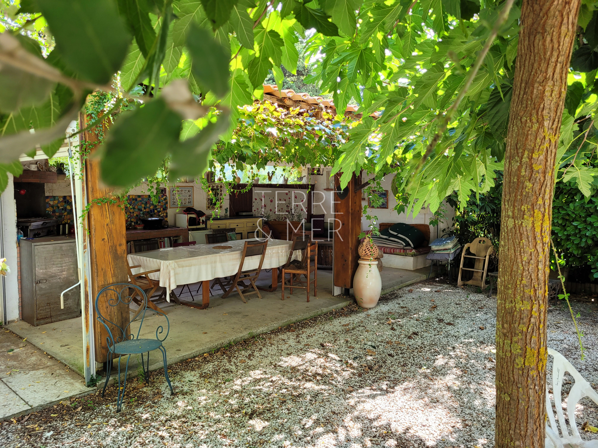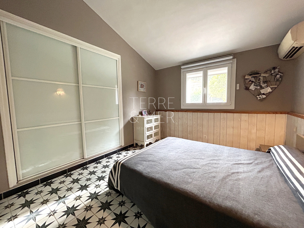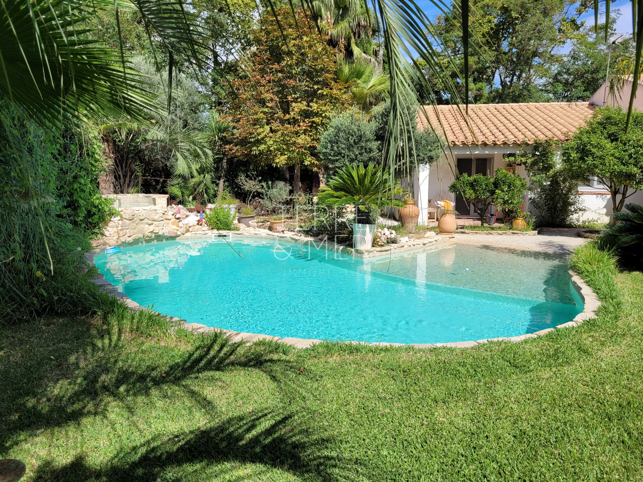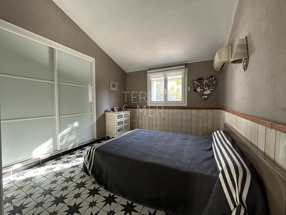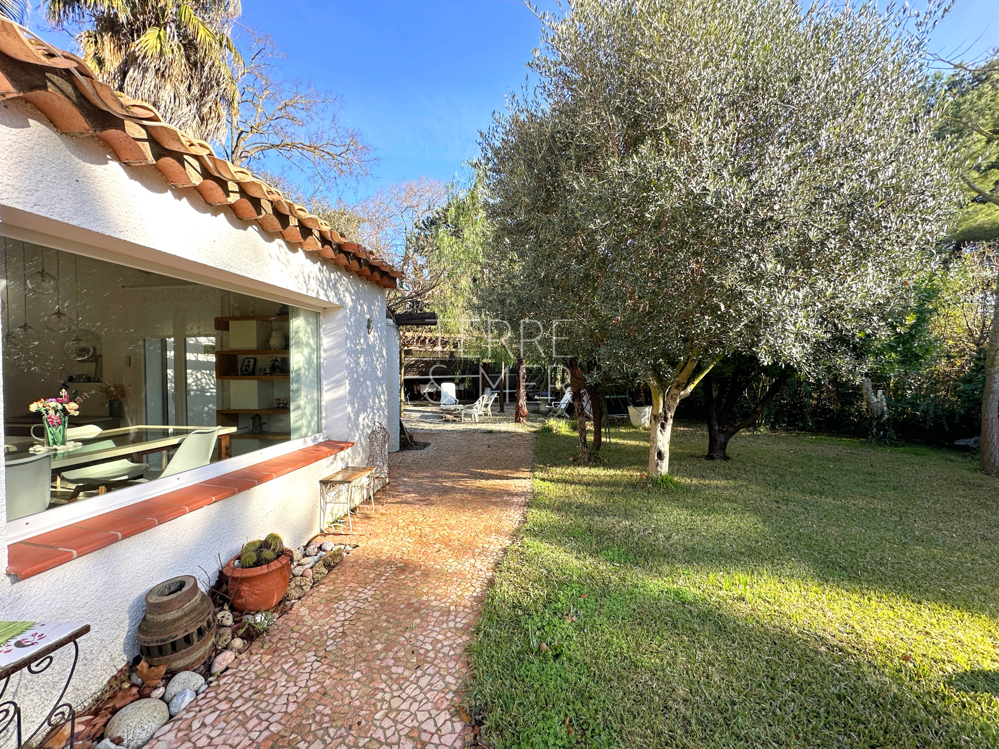Torreilles- À quelques minutes à pied du cœur du village, découvrez cette villa de plain-pied en 4 faces, implantée sur une superbe parcelle de 1 409 m², sans vis-à-vis, dans un environnement calme et préservé. Un véritable havre de paix. La maison de 115m2 habitable se compose d’un salon, d’une salle à manger, une cuisine aménagée et équipée avec cellier. L’espace nuit offre trois chambres, une salle de bain avec douche, wc séparé. Une dépendance composée d'une chambre, une buanderie et un garage vient compléter ce bien. À l’extérieur, vous profiterez d’un cadre privilégié, piscine chauffée avec jacuzzi, ainsi qu'une grande cuisine d’été, le tout au cœur d’un jardin arboré. La maison bénéficie de prestations confortables : double vitrage, volets roulants électriques, climatisation réversible, forage et arrosage automatique. Un bien rare offrant calme, intimité et qualité de vie, à proximité immédiate du village. Les informations sur les risques auxquels ce bien est exposé sont disponibles sur le site Géorisques