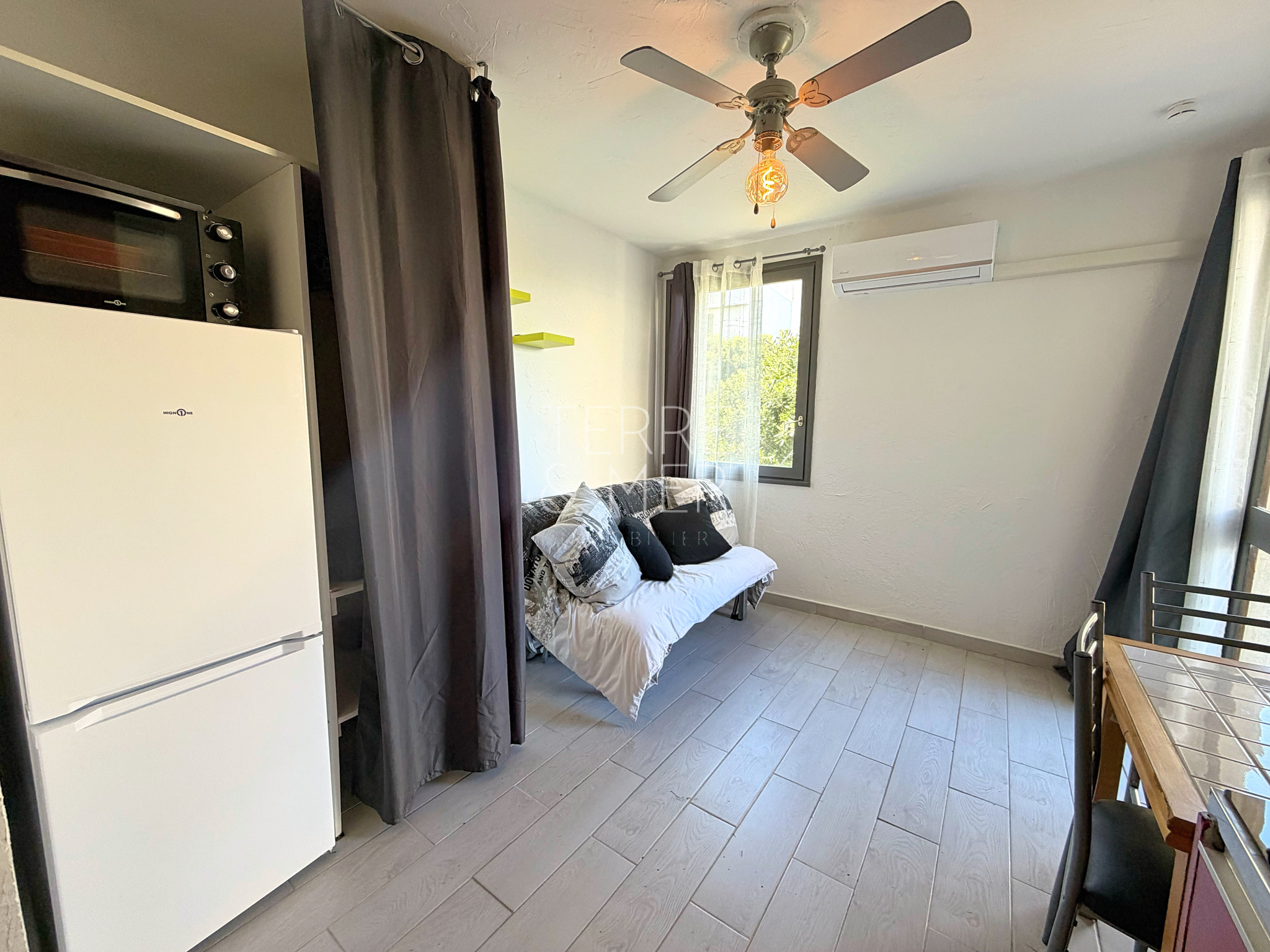 À seulement 50 mètres de la plage, ce studio en rez-de-jardin, situé dans une résidence calme et sécurisée avec gardien, bénéficie d’un accès direct à la mer et de la proximité du port de plaisance. Il se compose d’une pièce de vie avec cuisine équipée ainsi que d’une salle d’eau avec WC, et s’ouvre sur une agréable terrasse. Climatisation réversible et parking privé complètent ce bien. Copropriété avec faibles charges, bien entretenue et sans travaux à prévoir. Terrain de pétanque. Idéal pour un investissement ou un pied-à-terre. Vendu meublé. Les informations sur les risques auxquels ce bien est exposé sont disponibles sur le site Géorisques